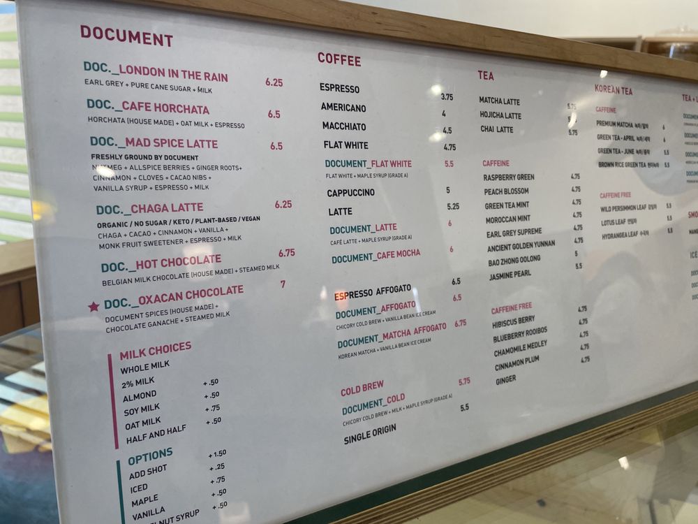 Introducing the menu at Document Coffee Bar, located in Los Angeles, you can indulge in a variety of coffee offerings such as Affogato, Americano, Cafe Mocha, Cappuccino, and unique creations like the Cold Brew Document Cold with chicory coffee, milk, and maple syrup. For tea lovers, there are options like Ancient Golden Yunnan, Bao Zhong Oolong, and unique blends like Jasmine Pearl and Moroccan Mint. Don't miss out on the Tea Lattes such as Chai Latte, Hojicha Latte, and Matcha Latte. The ambiance is perfect for a quiet working space with amenities like Wi-Fi and outdoor seating. This Asian-owned, women-owned establishment also has gender-neutral restrooms and is dog-friendly. Document Coffee Bar's menu offers a delightful mix of coffee and tea selections that cater to every taste preference.